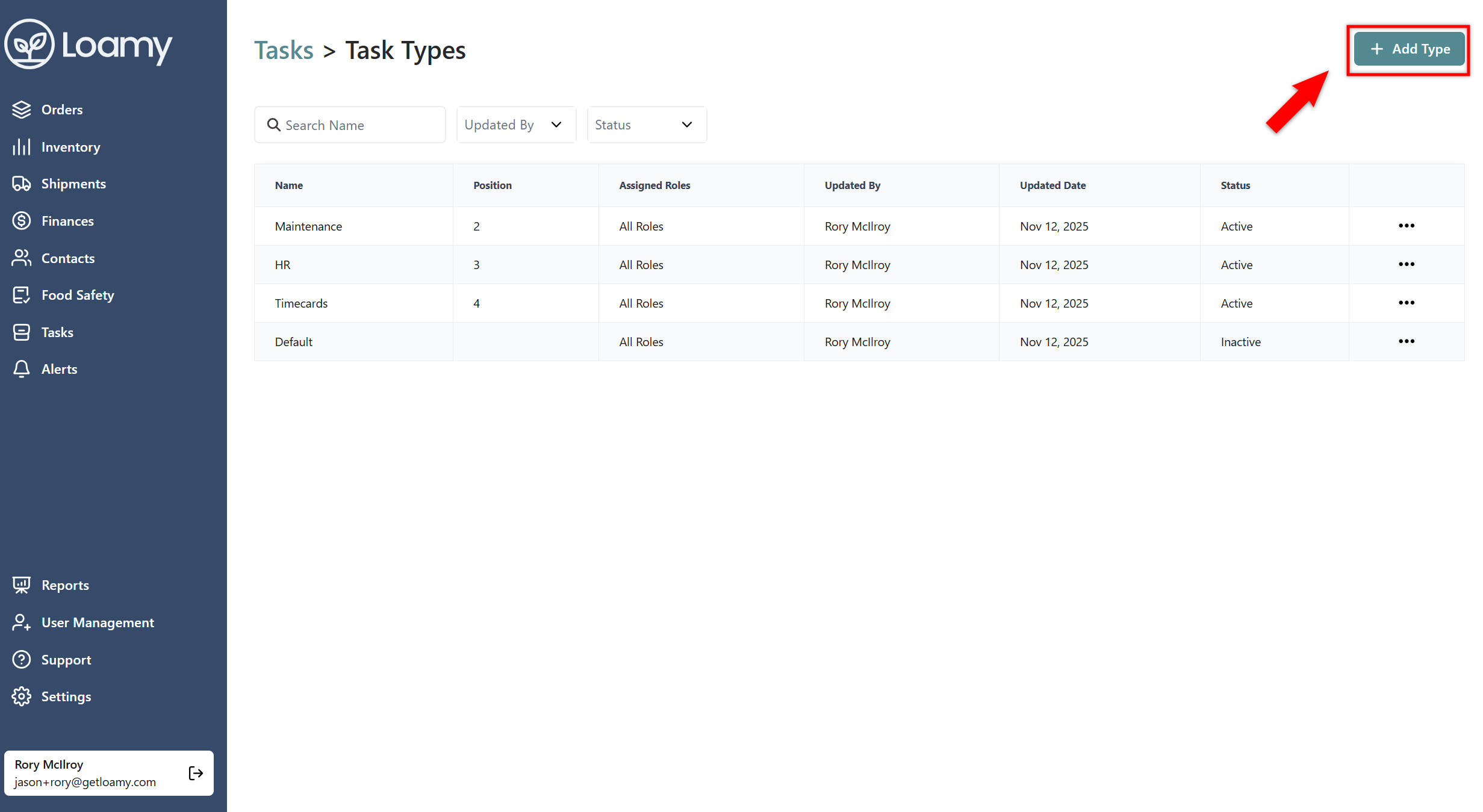 5. Enter in the name and position. You can also assign certain roles to the type so that only certain individuals can view the tab and create those tasks. Select Save.
