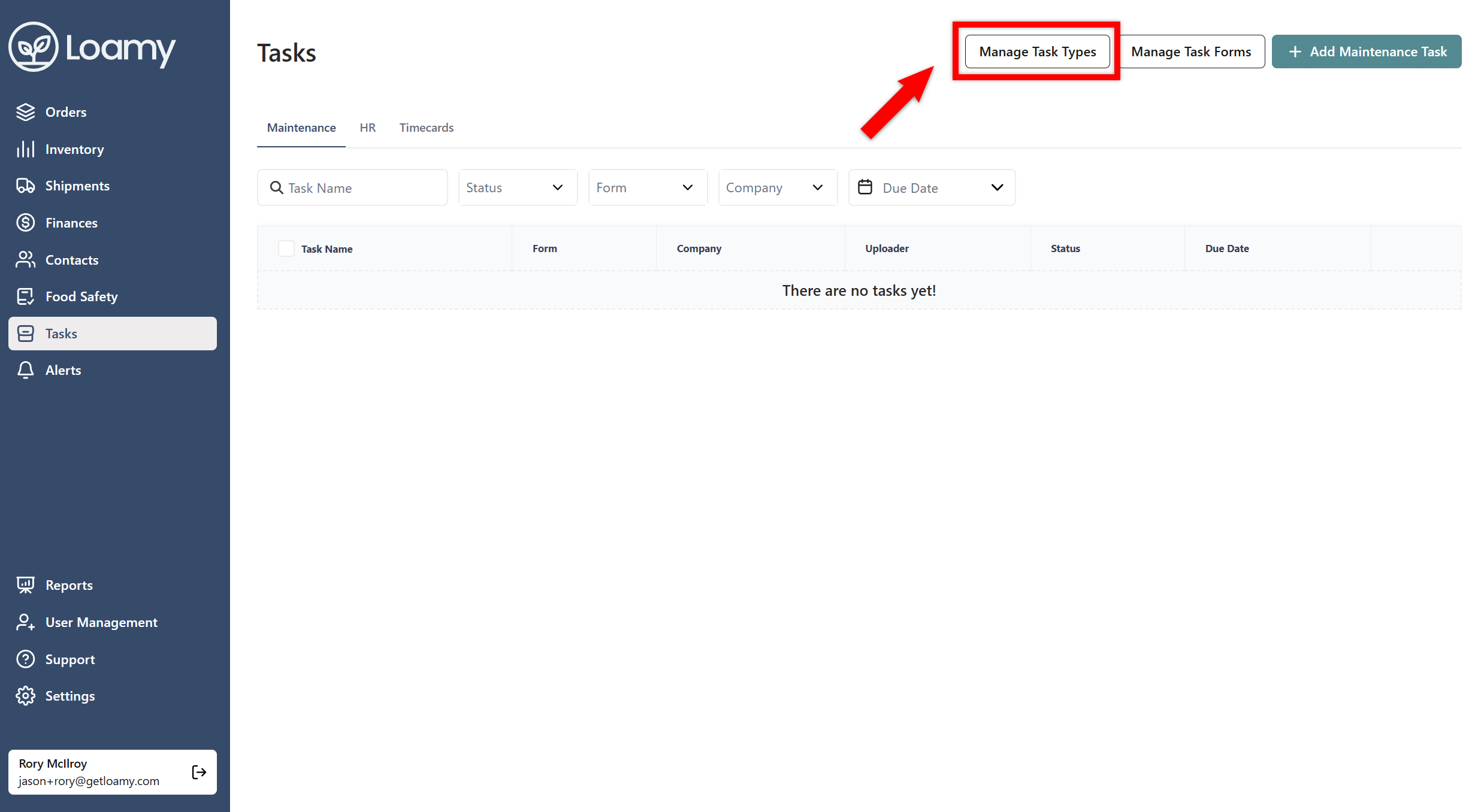 2. Go to the Tasks page by selecting it on the left-hand navigation menu.