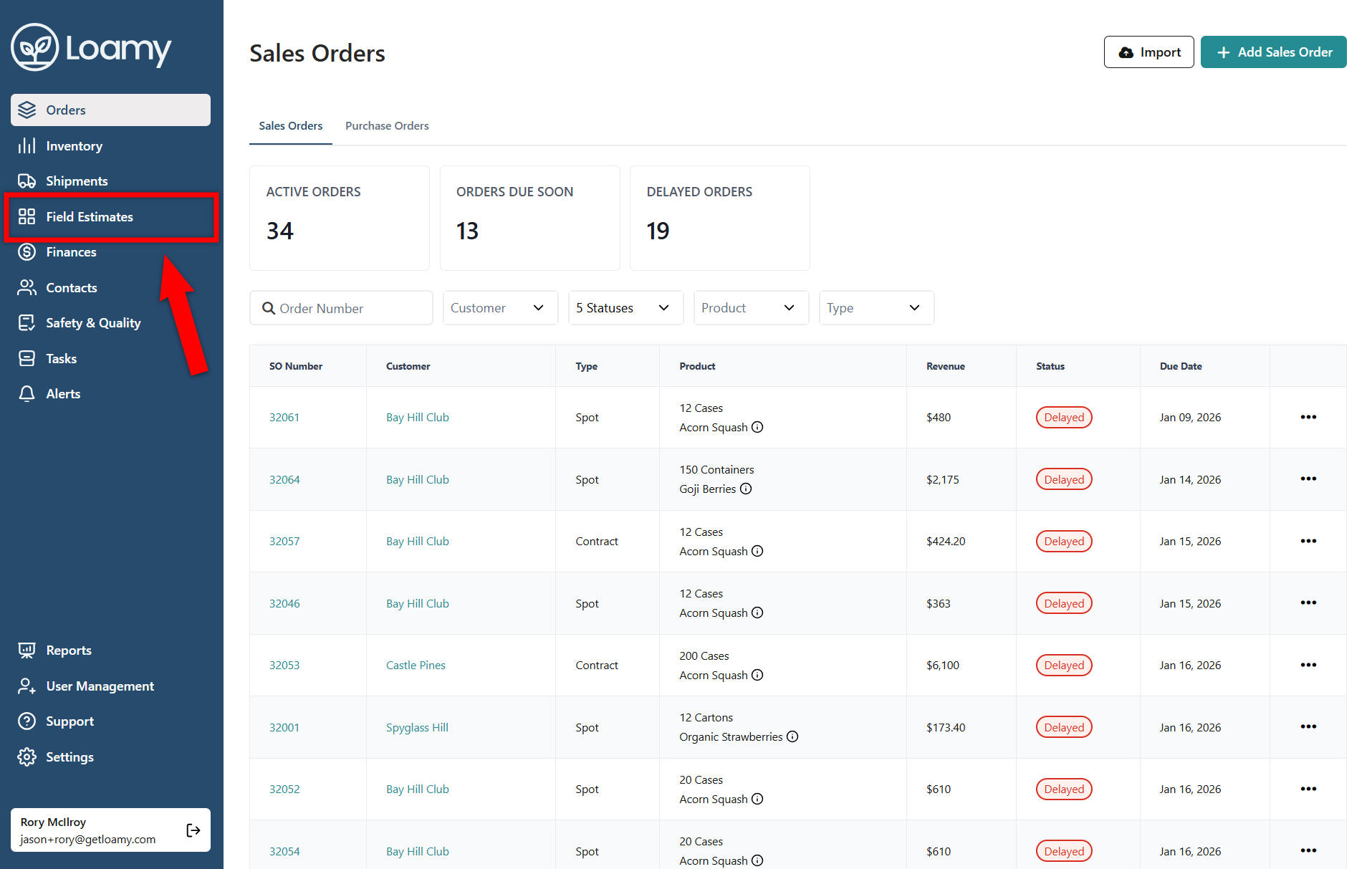 2. Go to the Field Estimates page by selecting it on the left-hand navigation menu.