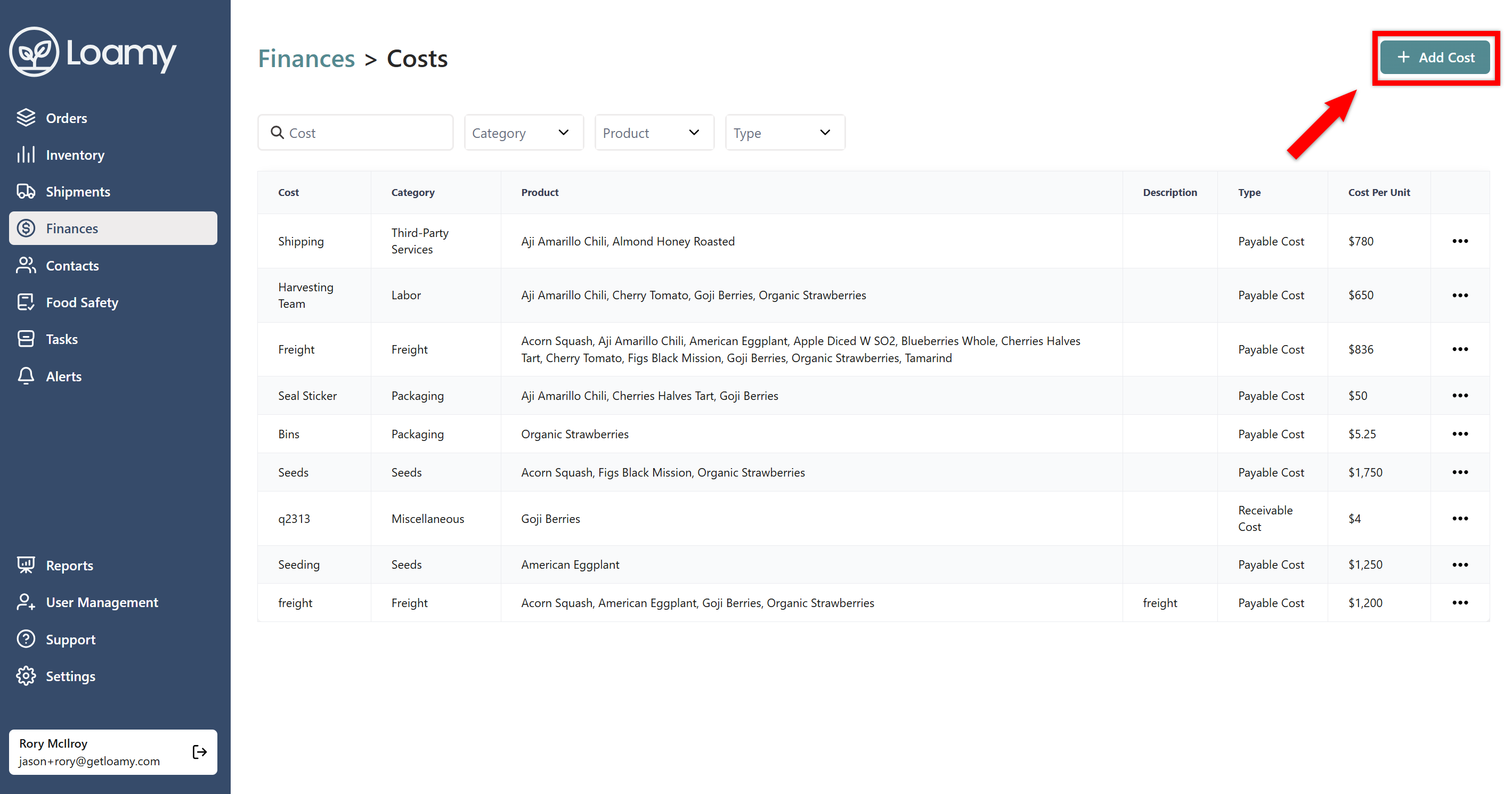 4. Select Add Cost.