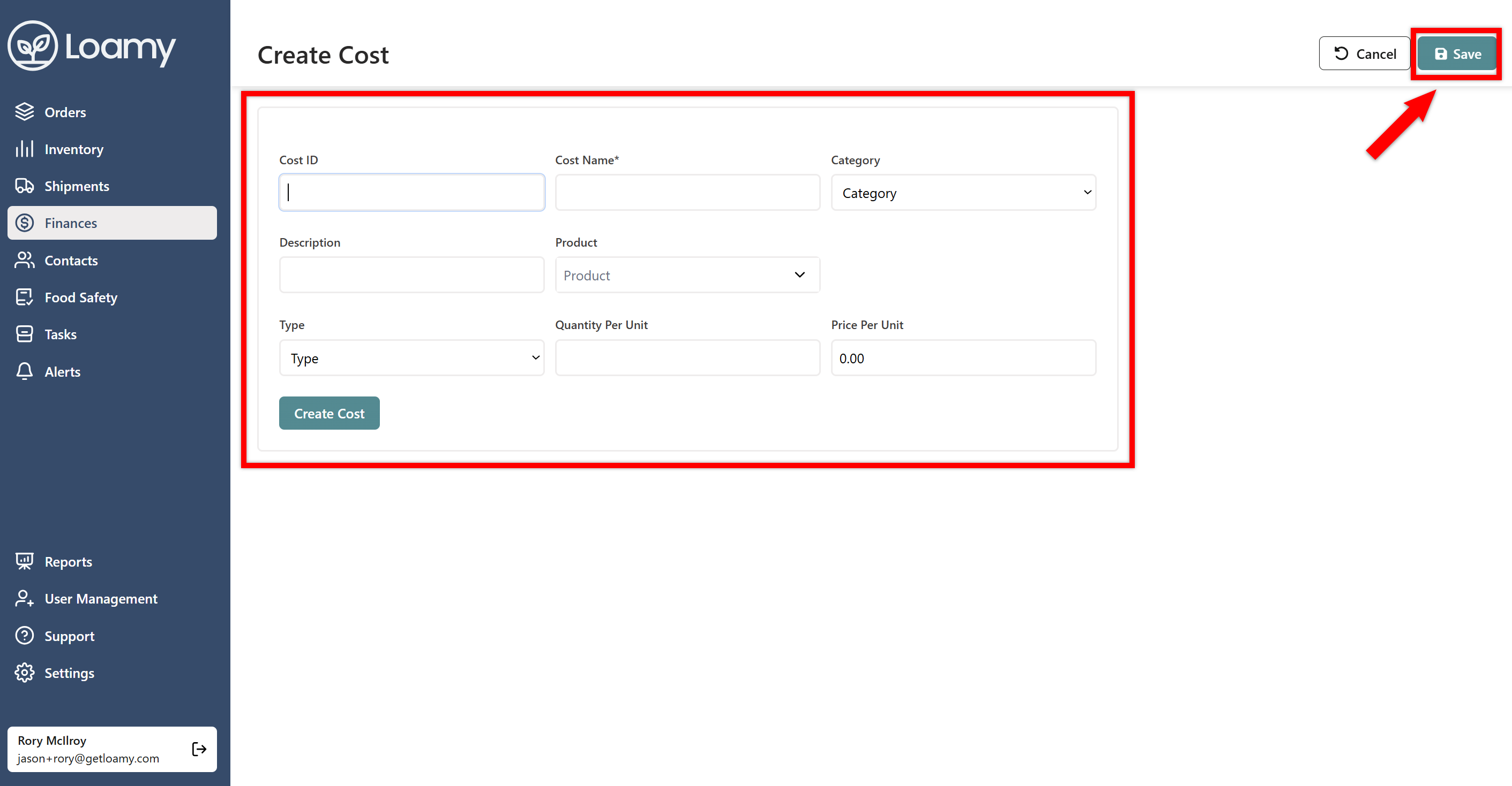 5. Add a name for the cost, enter additional information, and then hit Save.