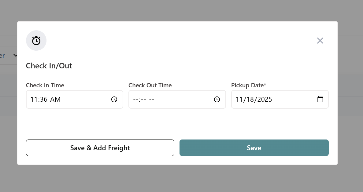 5. Confirm the check in time and add freight for the order if you haven't done so by selecting Save & Add Freight. Add in the freight information and hit Save.