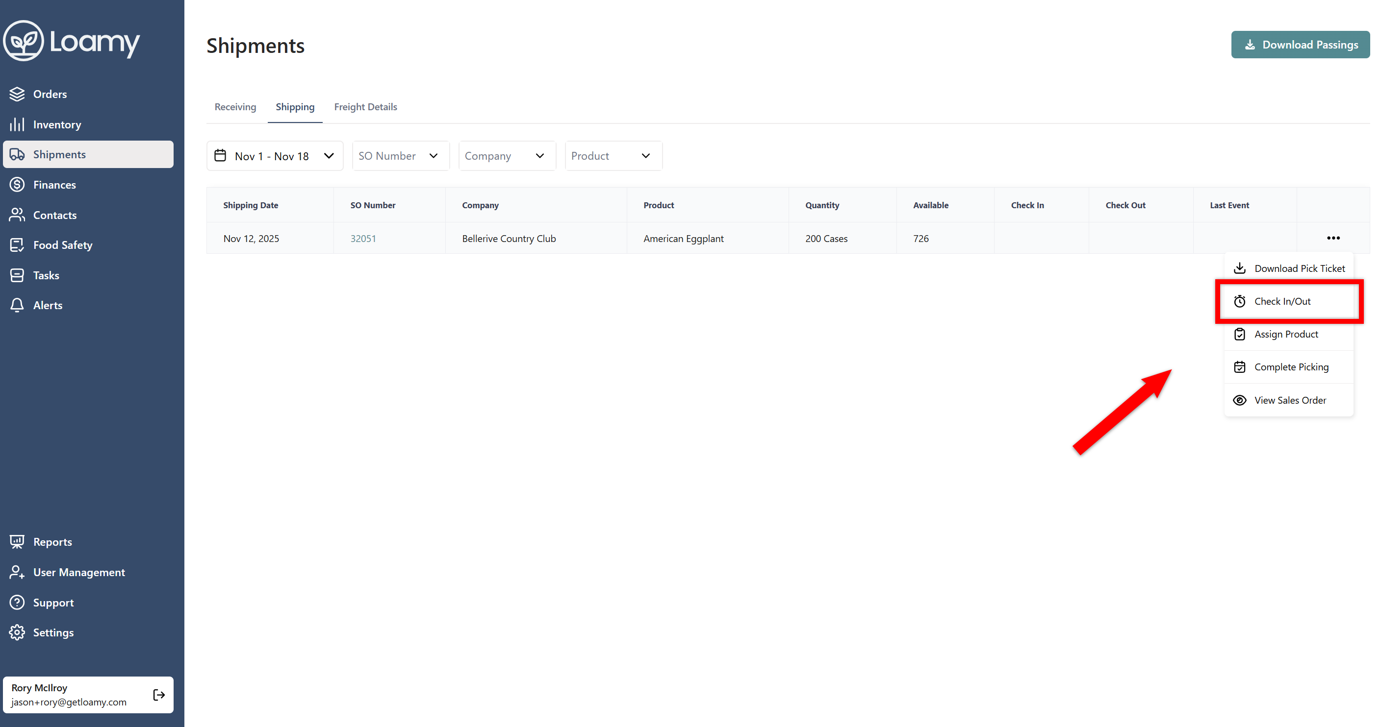 4. Select the three dots for the order you want to ship. Select Check In/Out.